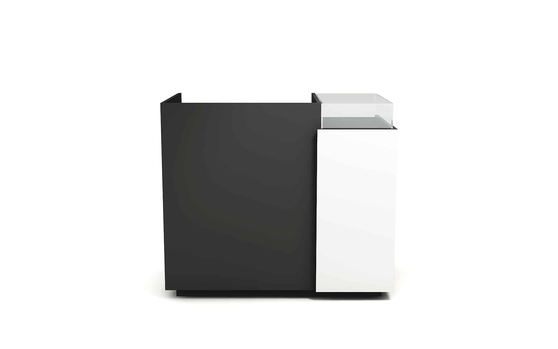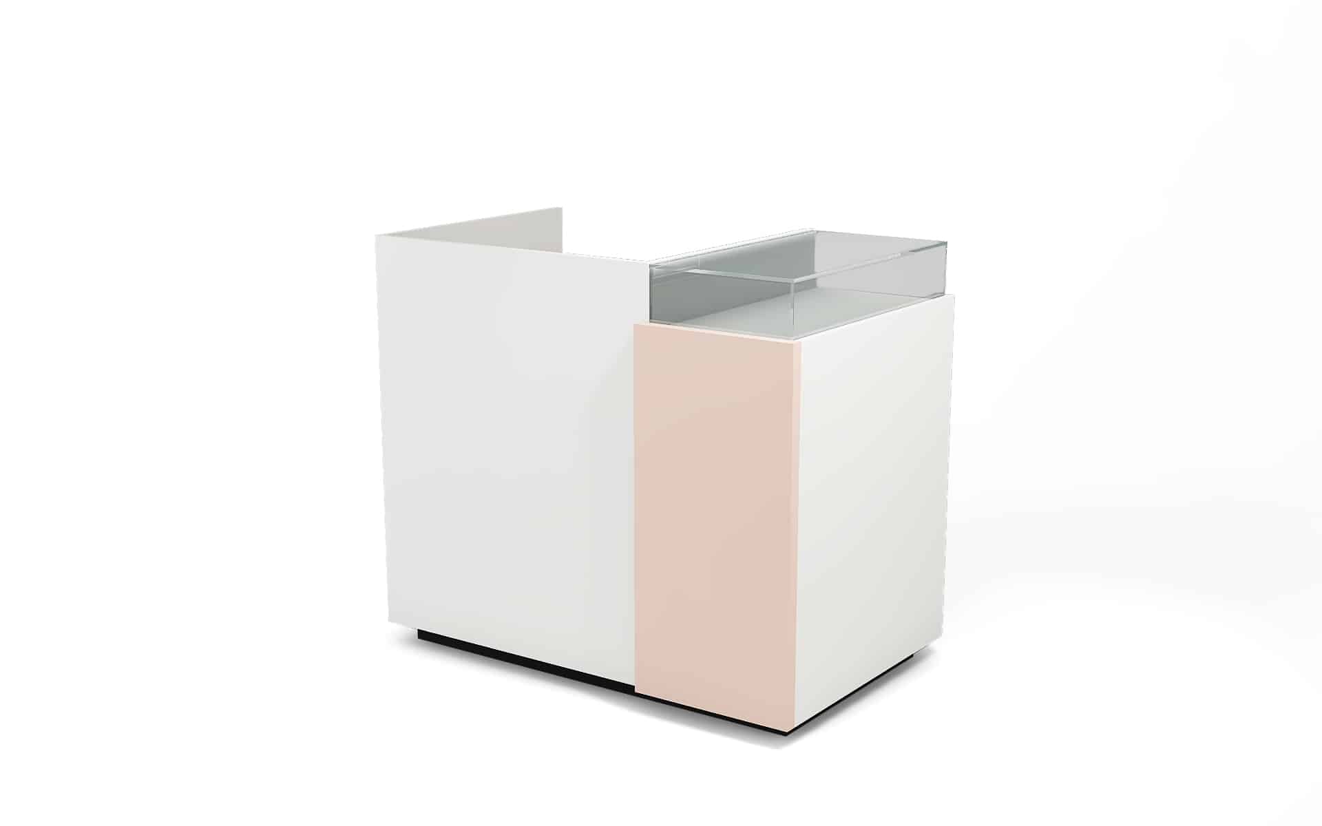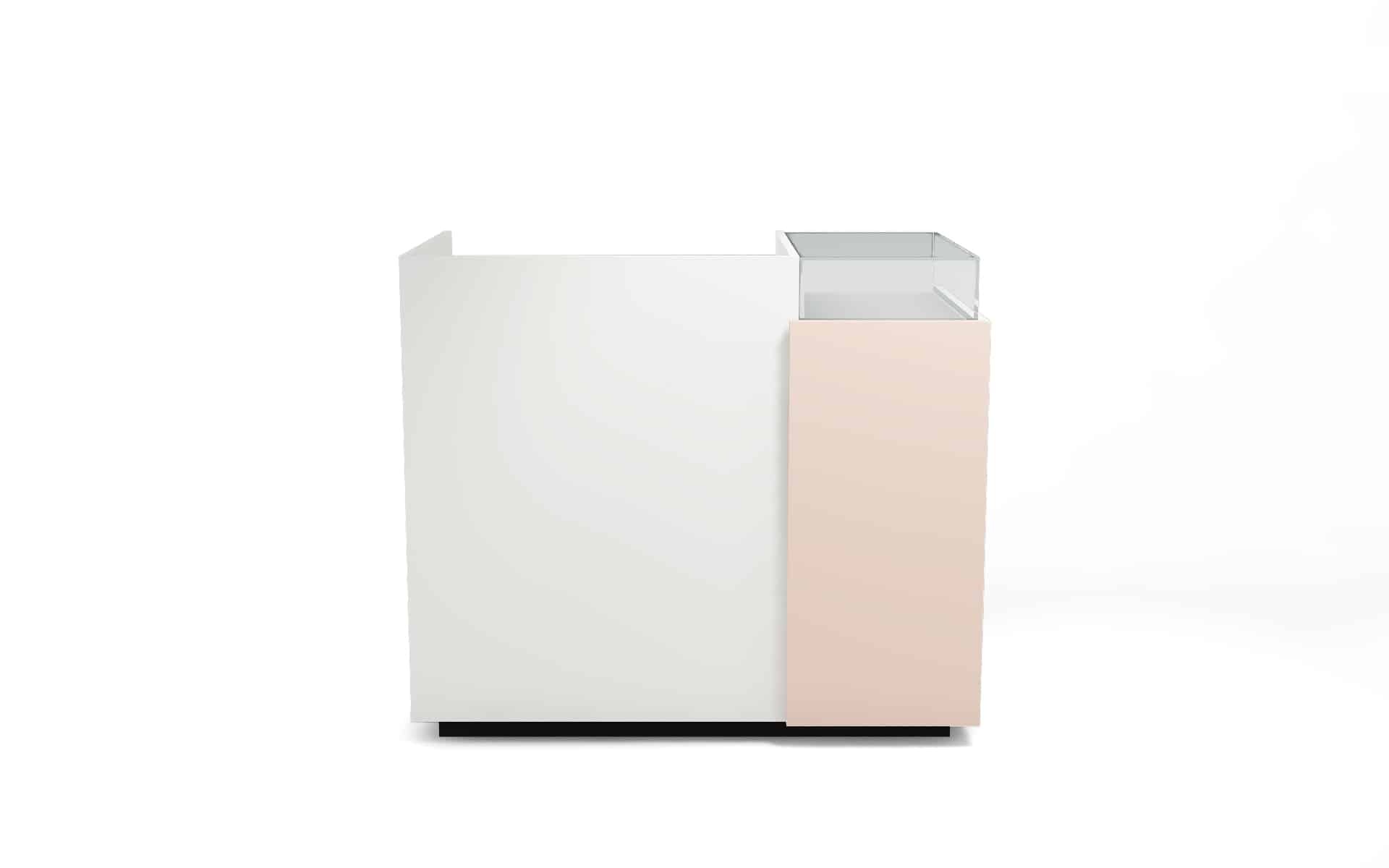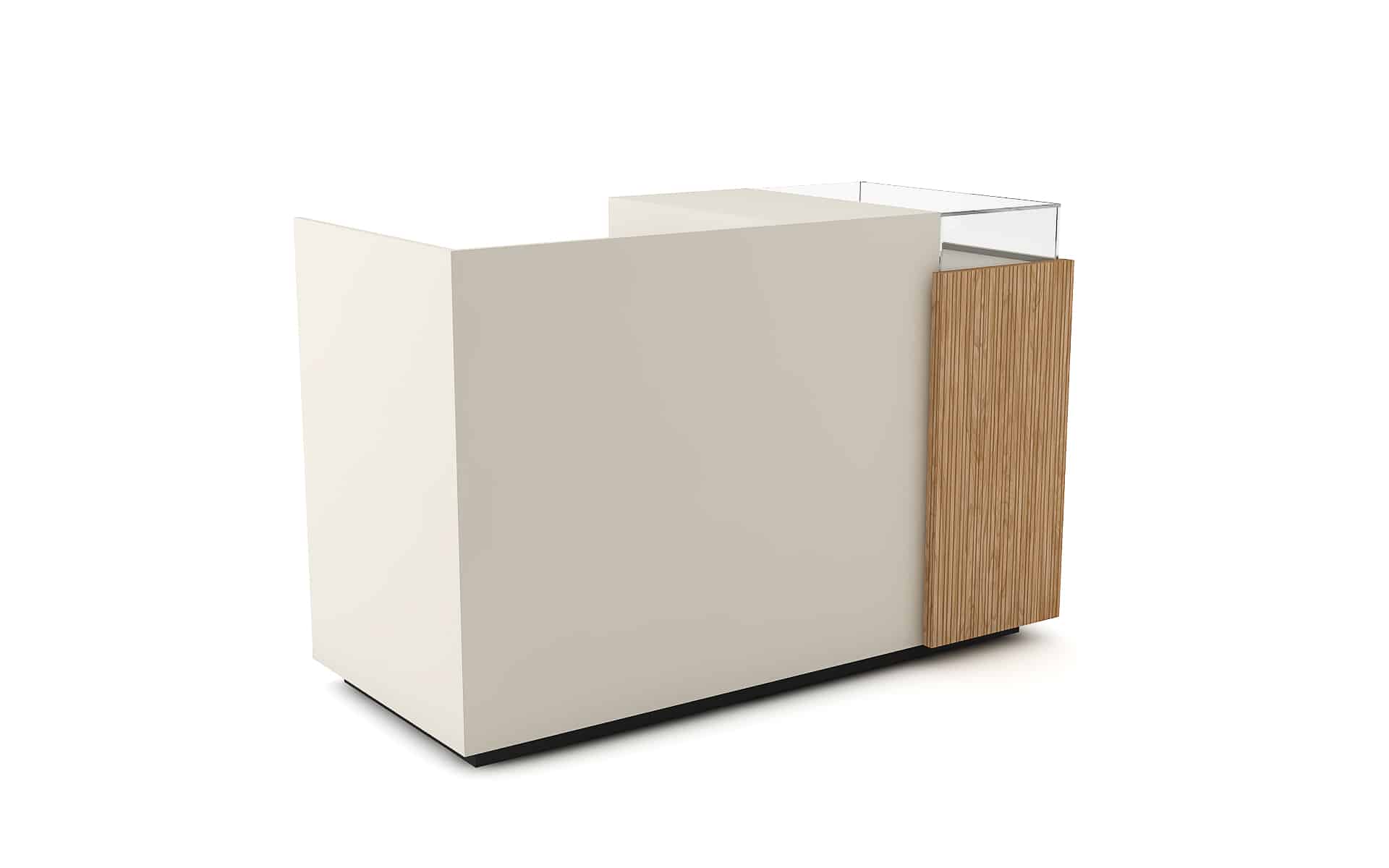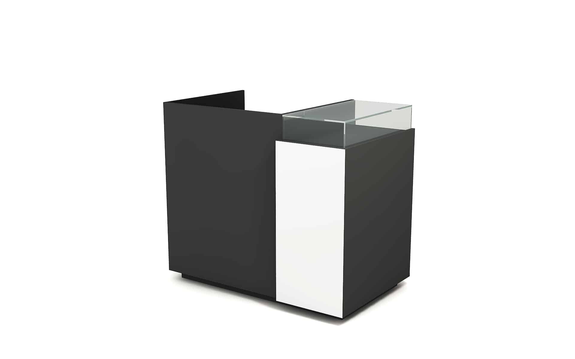 Comptoir de caisse avec insert frontal et vitrine d’exposition