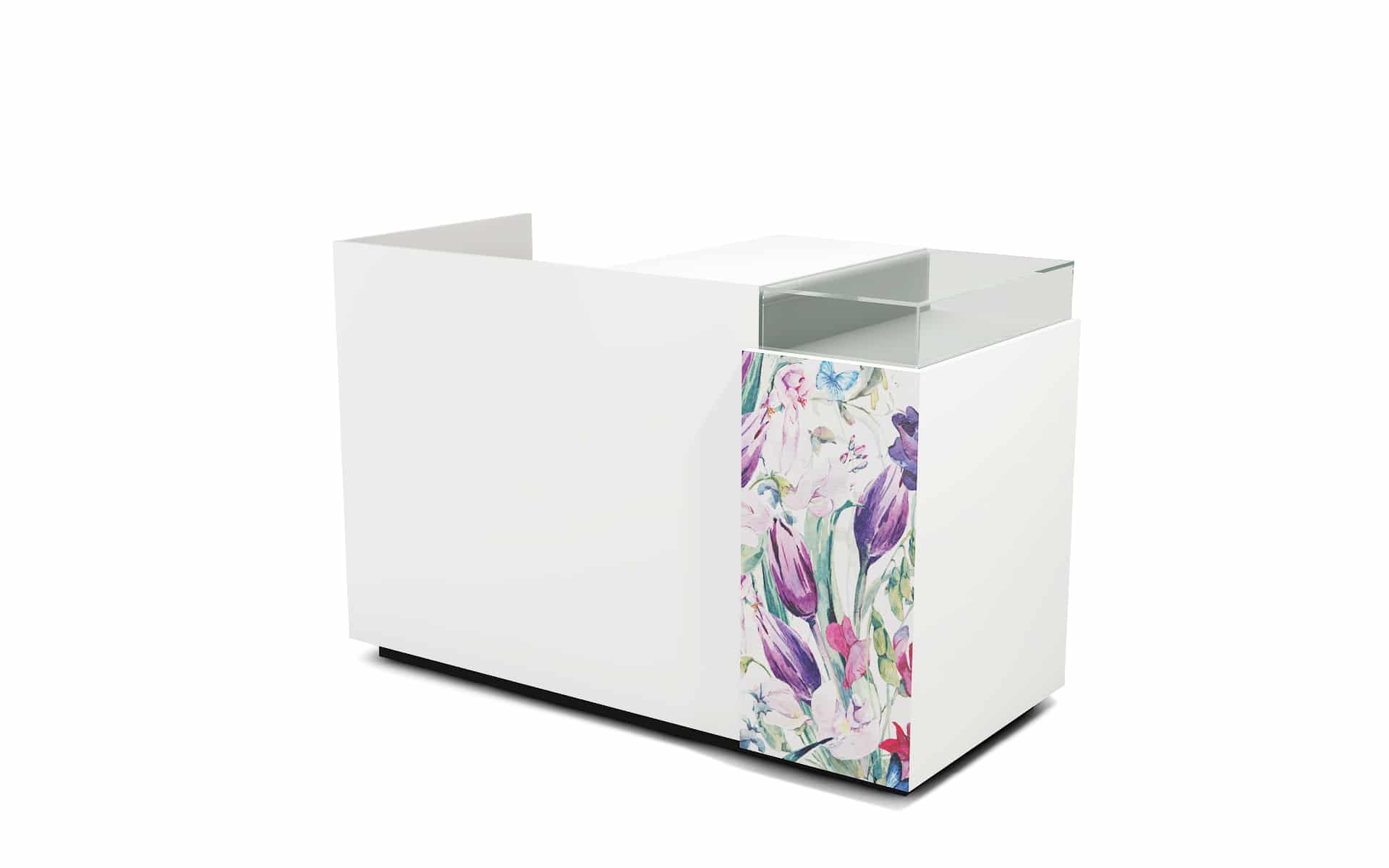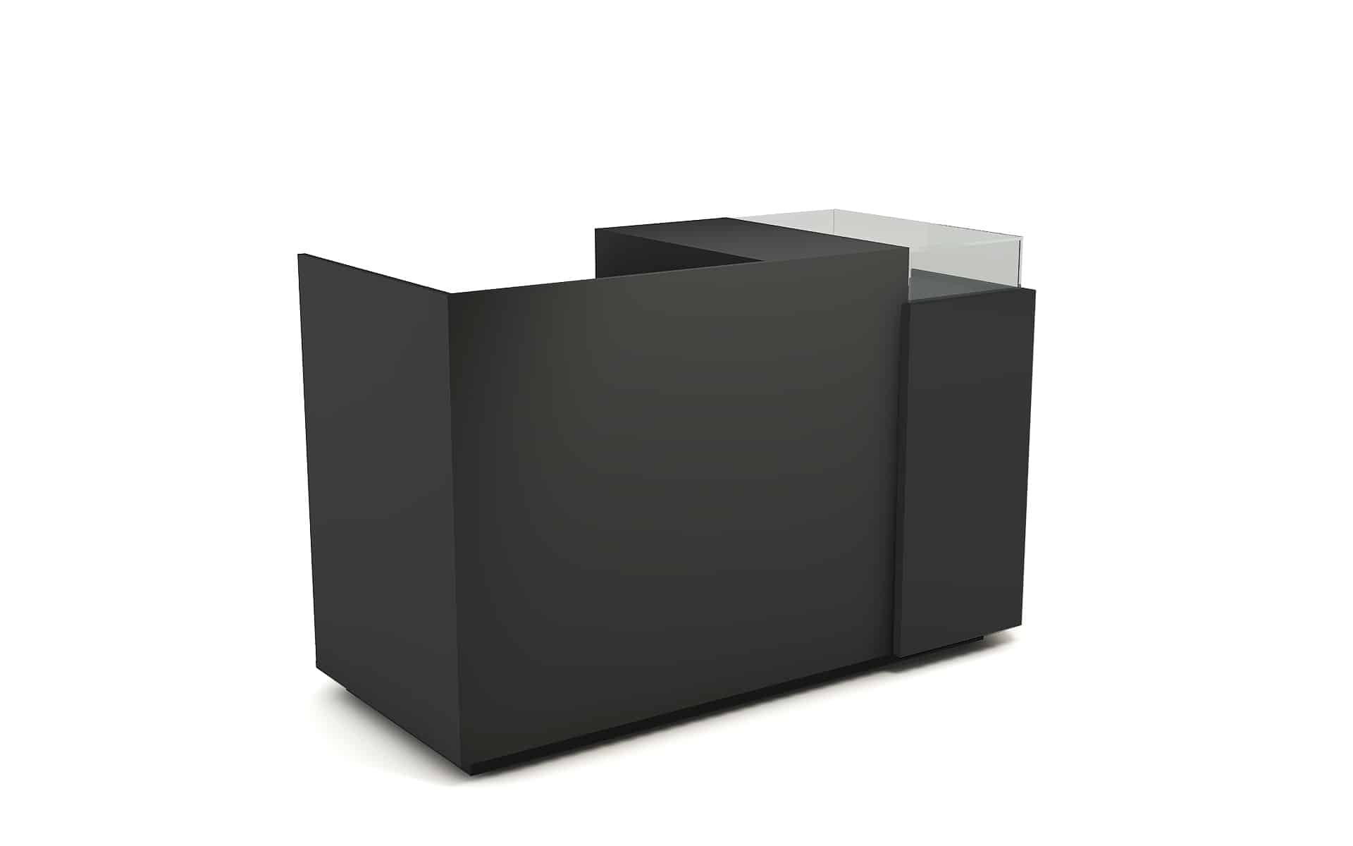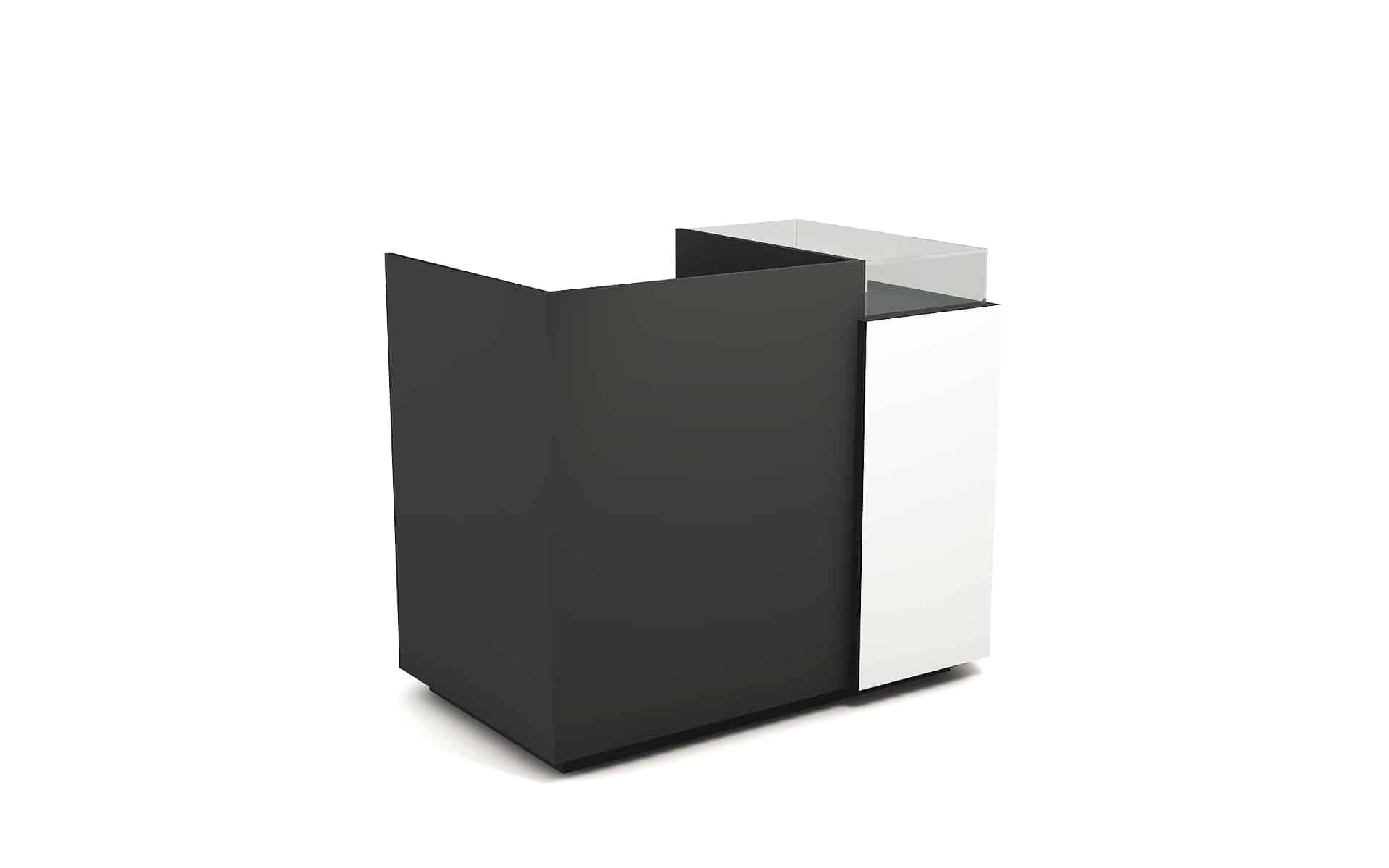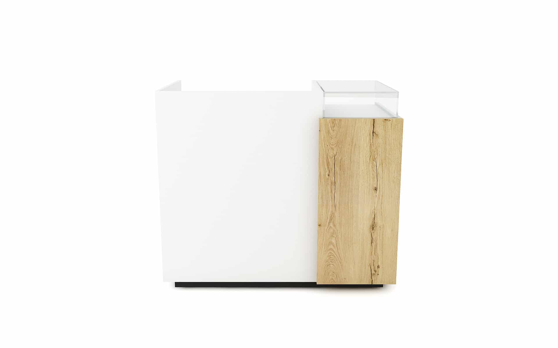 Comptoir de caisse avec insert frontal et vitrine d’exposition