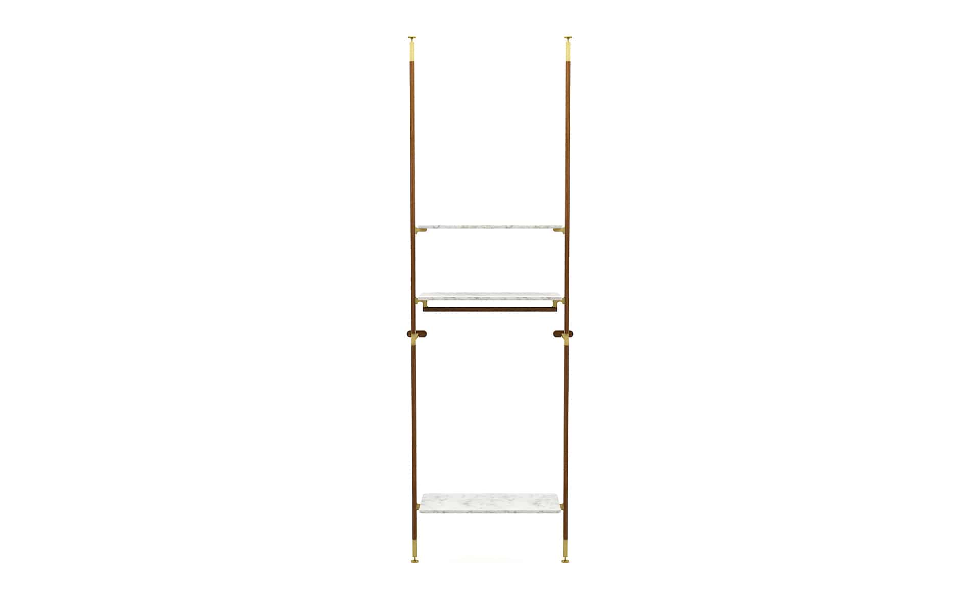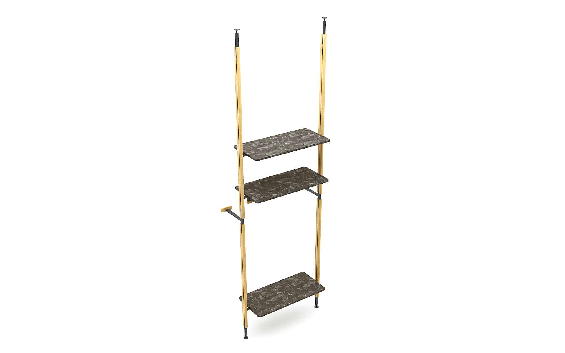 • Finitura Rovere naturale / metallo Brunito / Marmo Nero, Rovere tinto Noce / metallo Bronzo / Marmo Bianco