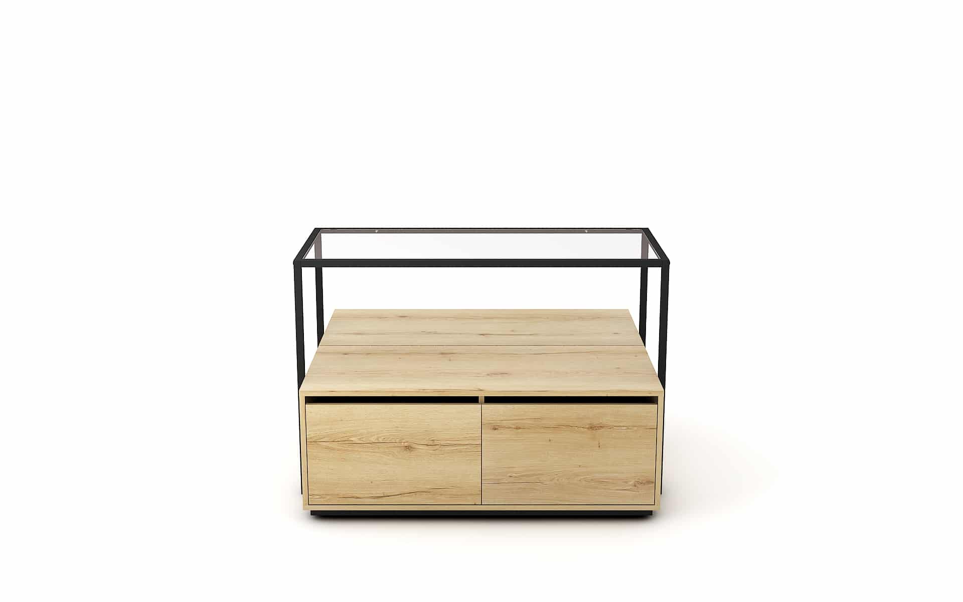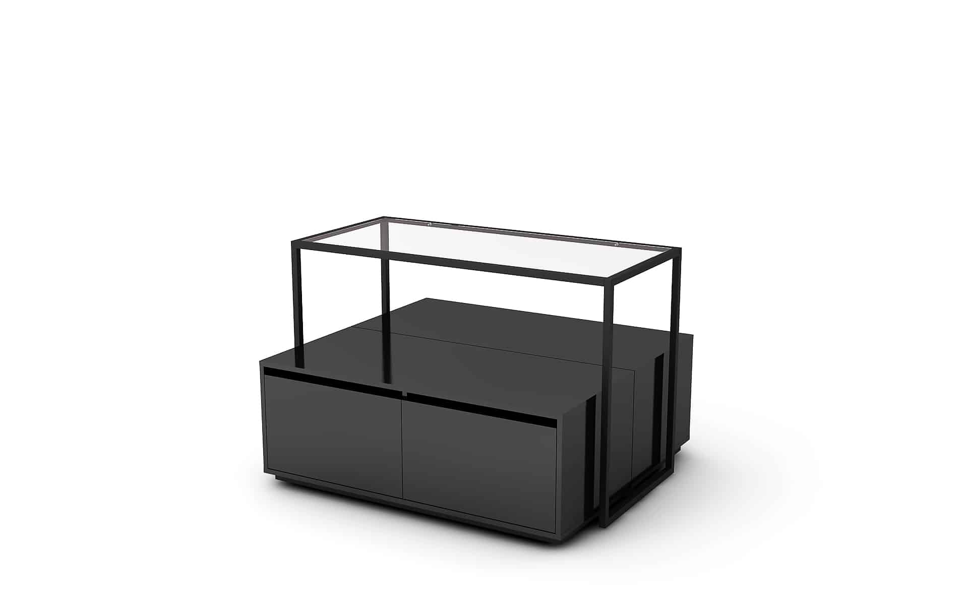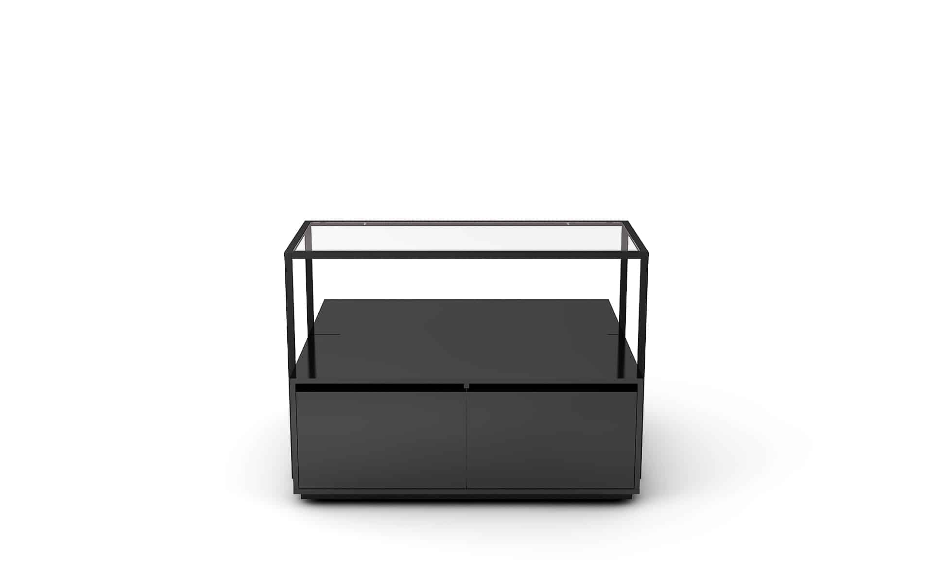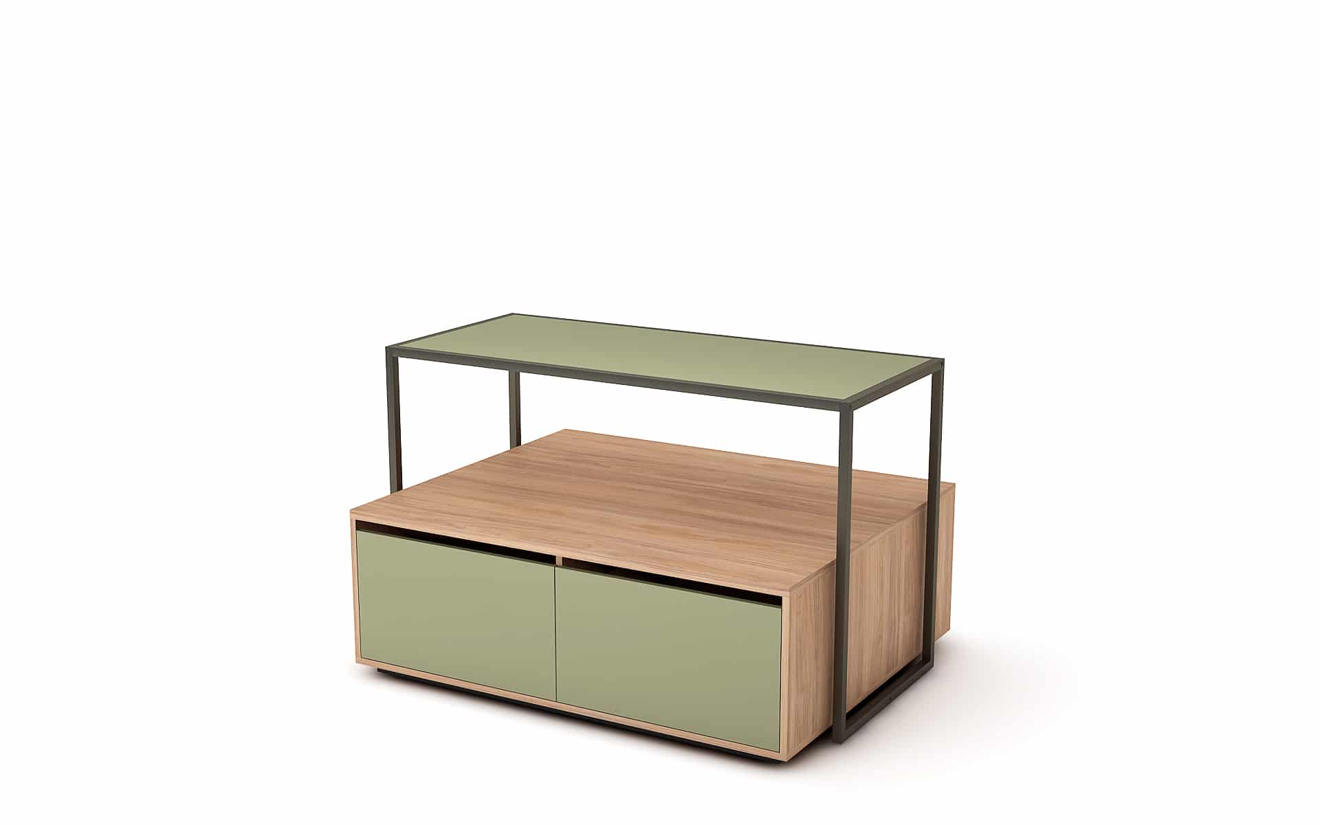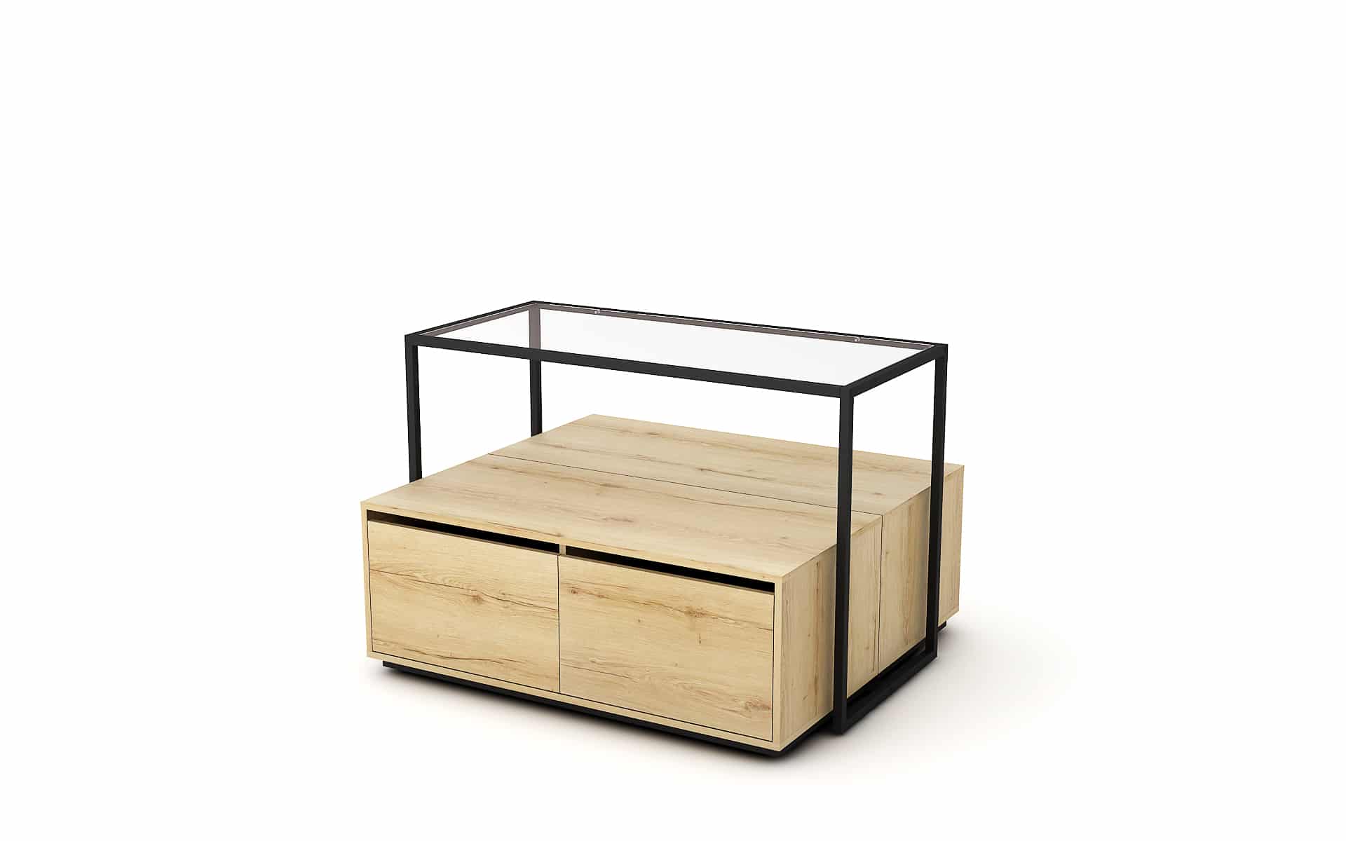 • Finitura Nero Opaco / Rovere Biondo / Metallo Nero Opaco, Nero Opaco / Vetro trasparente / Metallo Nero Opaco, Noce Cannella / Olive / Metallo trasparente Opaco