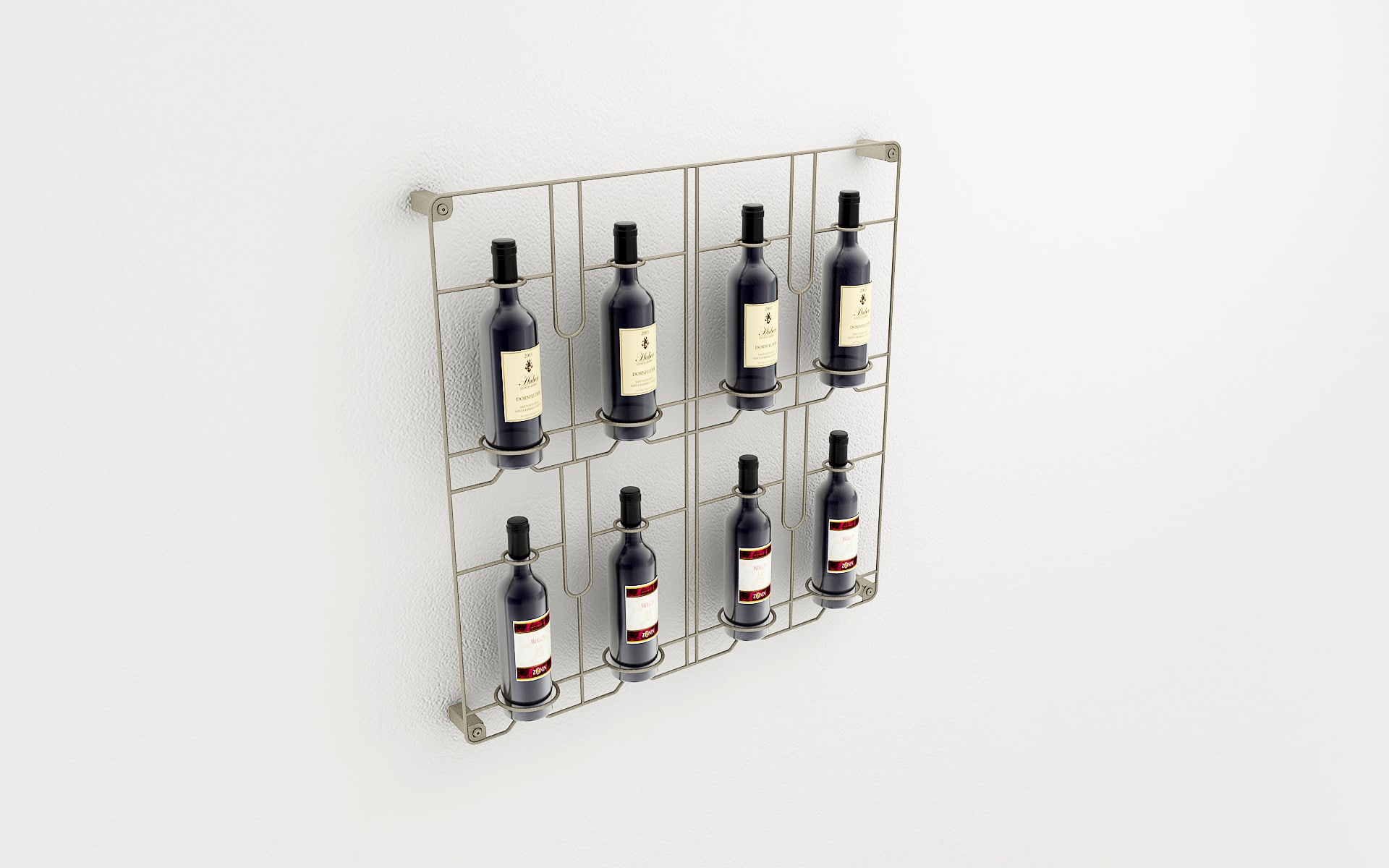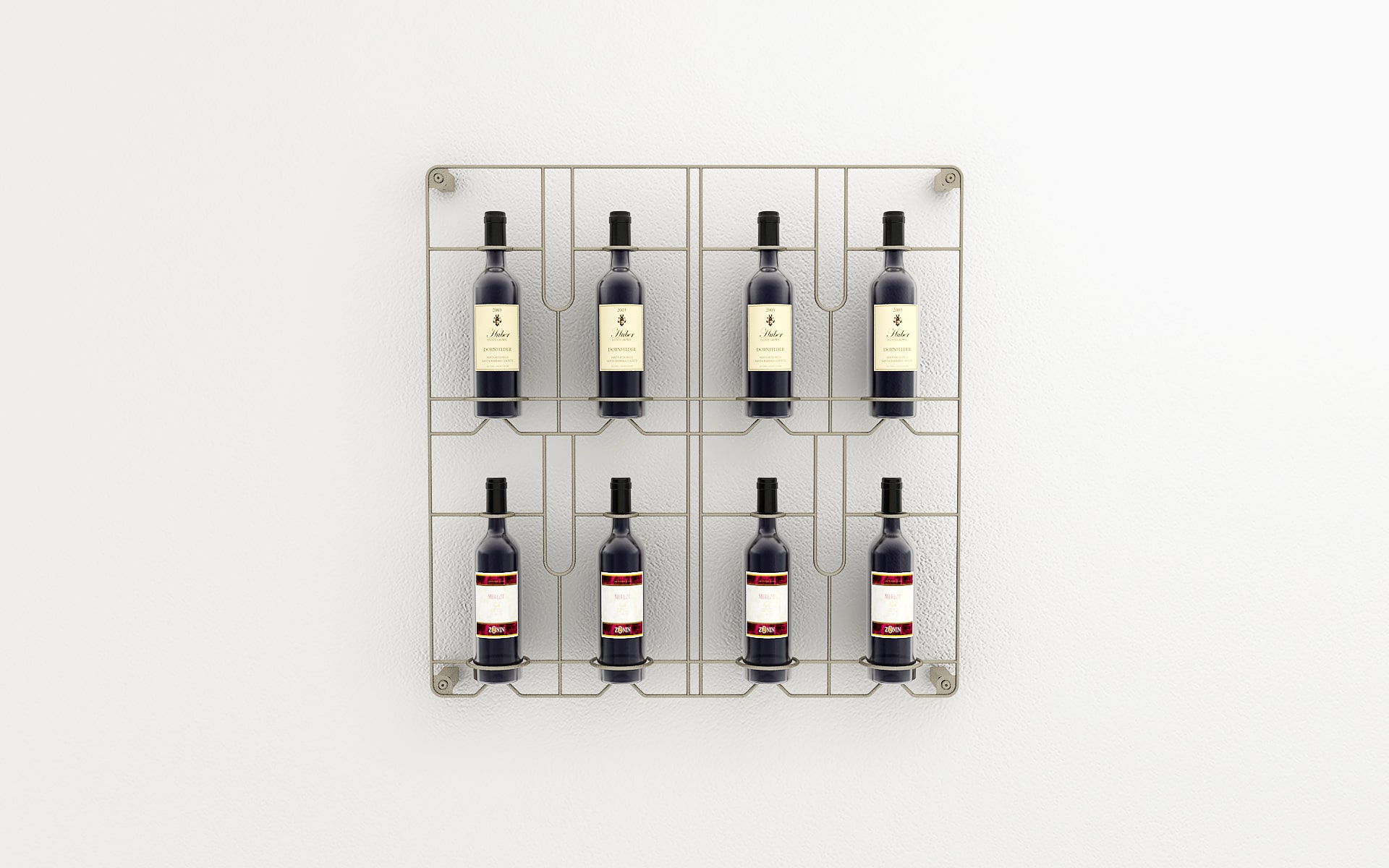 Un gioco di pannelli, cremagliere e montanti proposti in finiture esclusive e fuori dagli schemi per rendere l’arredo a muro non solo una soluzione espositiva ma un vero decoro.