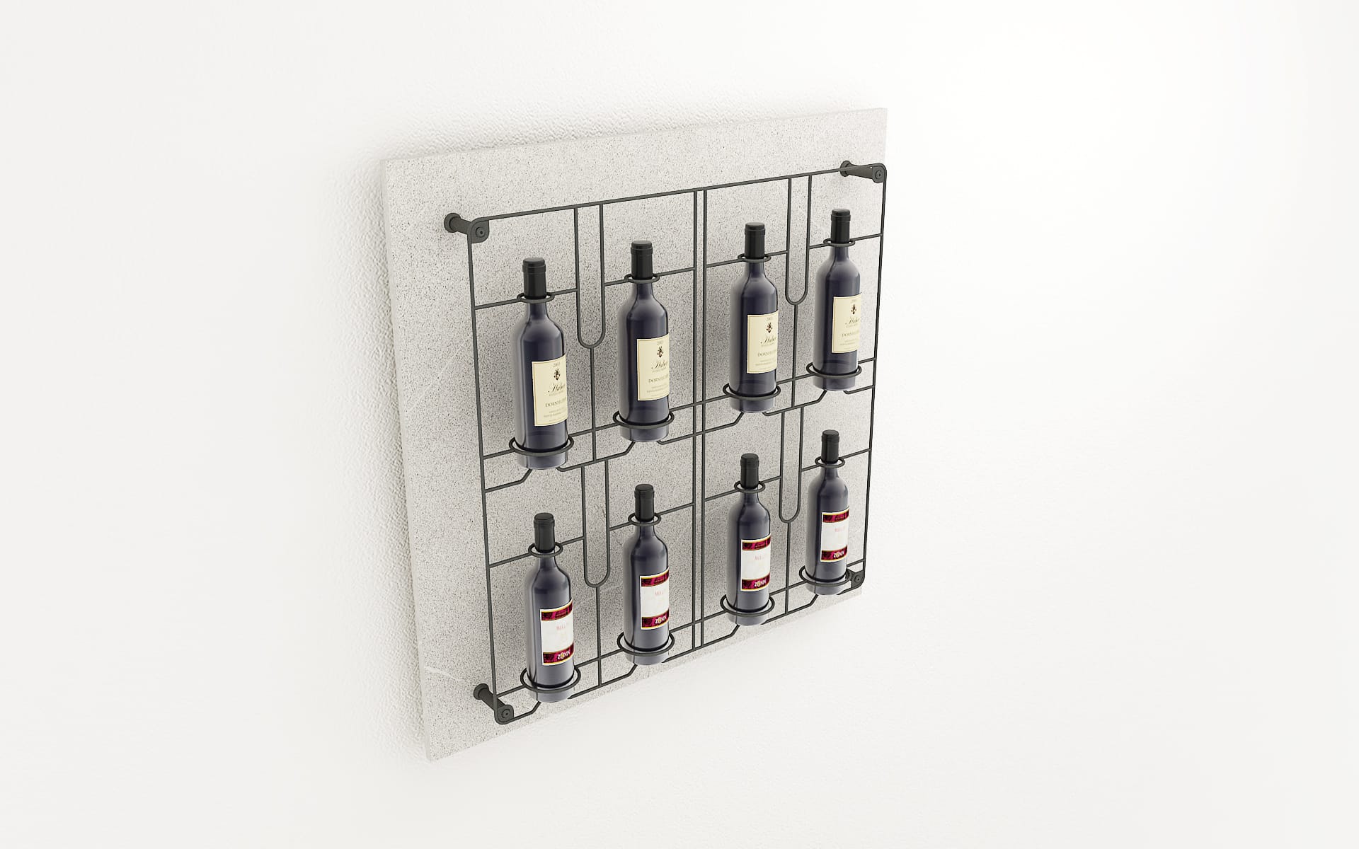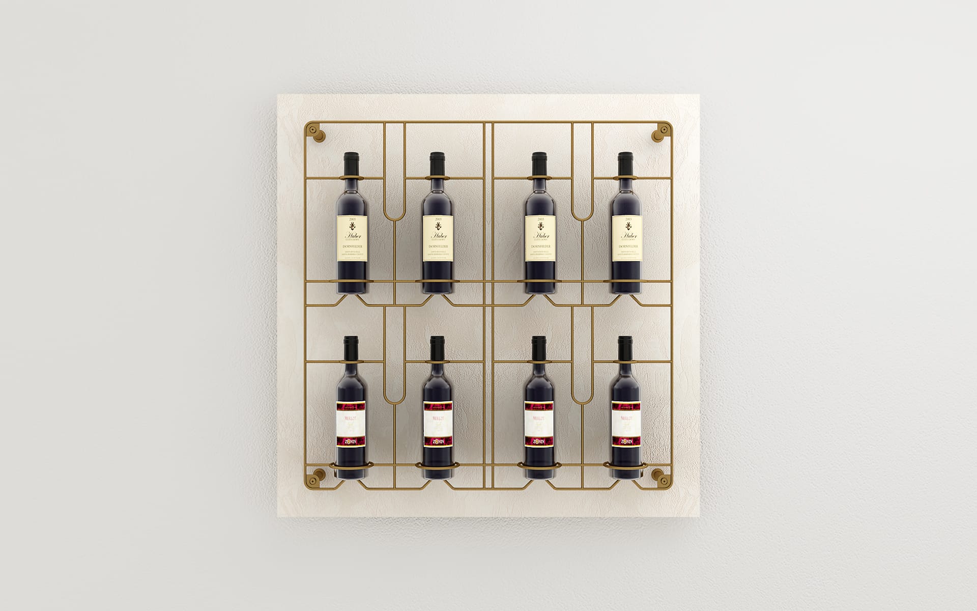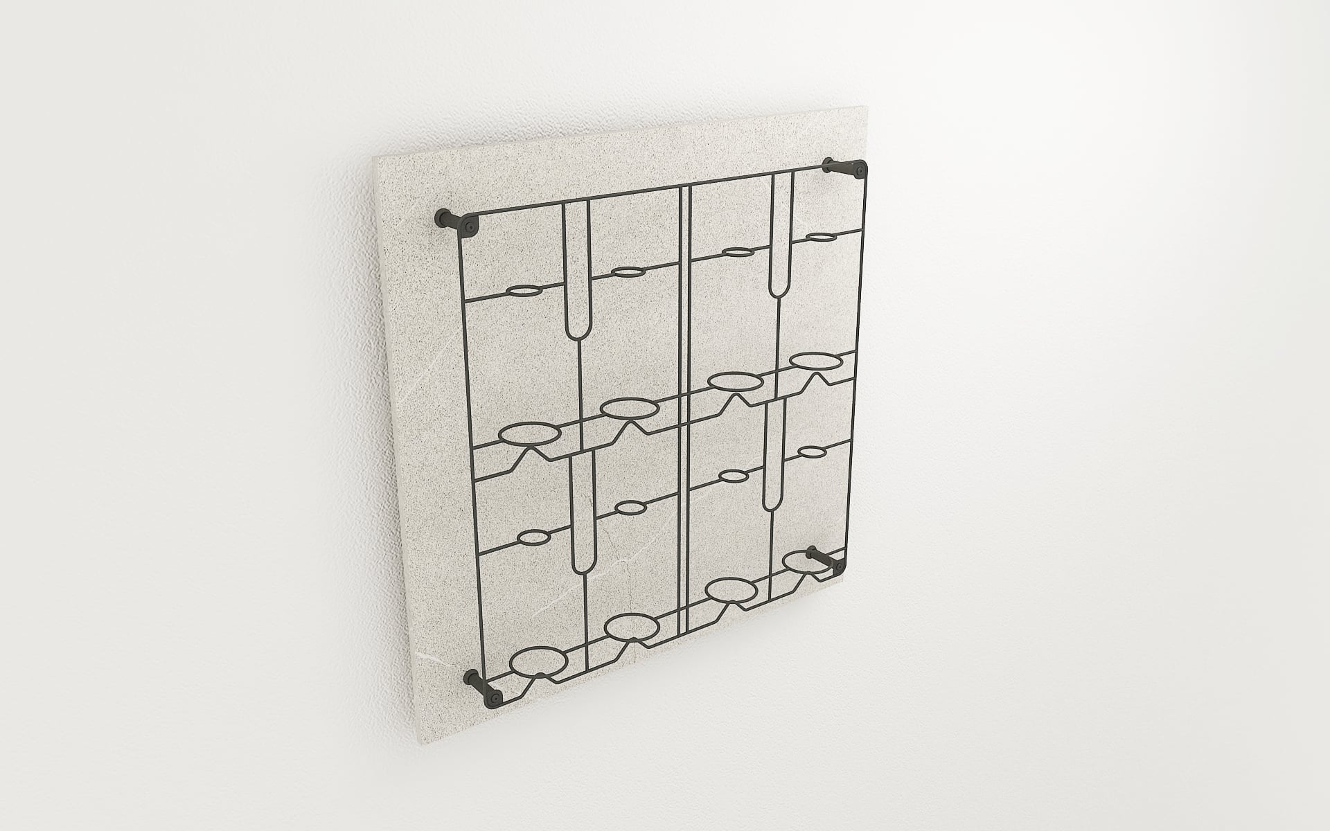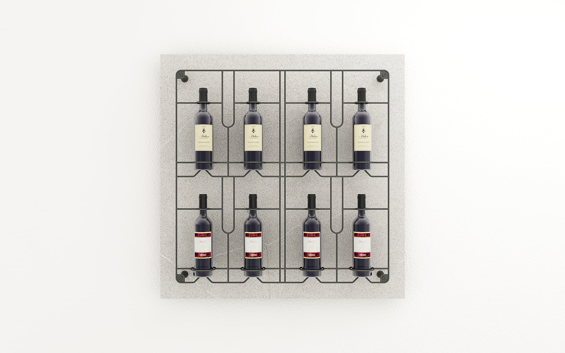 Pannello con griglia espositiva per bottiglie